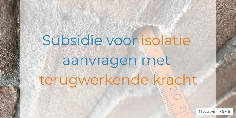 Hoe kunt u isolatie subsidie krijgen voor één isolatiemaatregel? De overheid wil 15 procent subsidie gaan geven in 2023 wanneer u één isolatiemaatregel of isolerend glas laat plaatsen. Helaas is het niet zo dat u met terugwerkende kracht altijd subsidie kan aanvragen. De isolatie moet namelijk zijn geplaatst na 2 april 2022 om alsnog voor één maatregel subsidie aan te vragen.